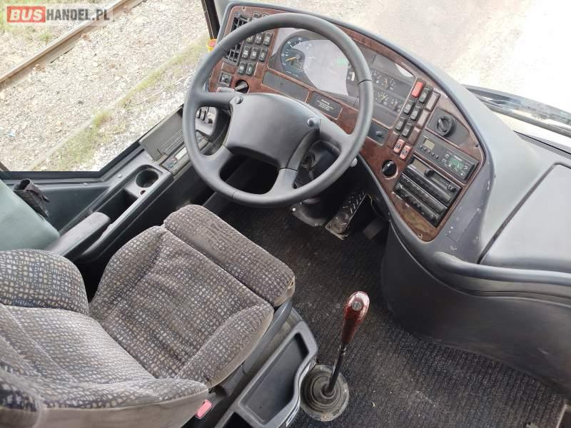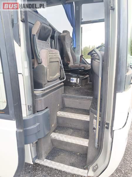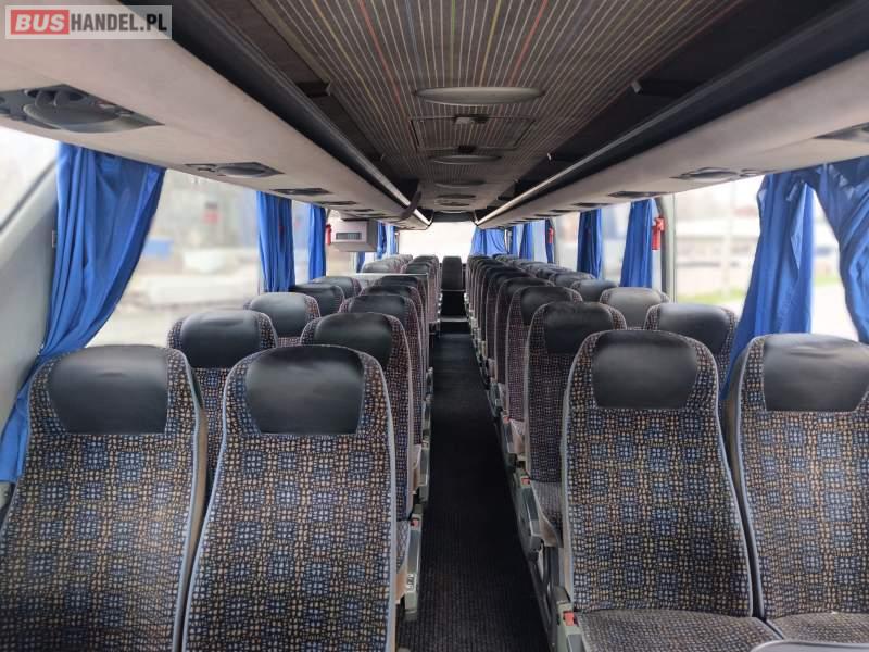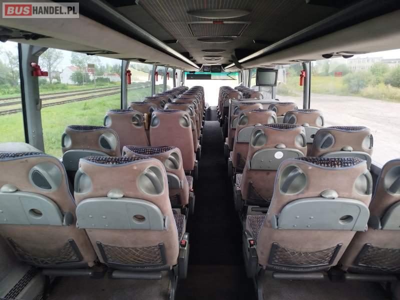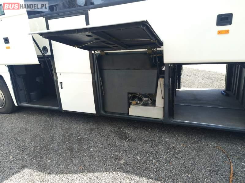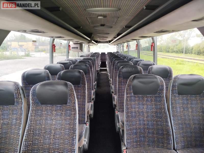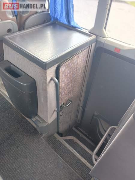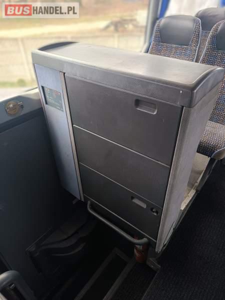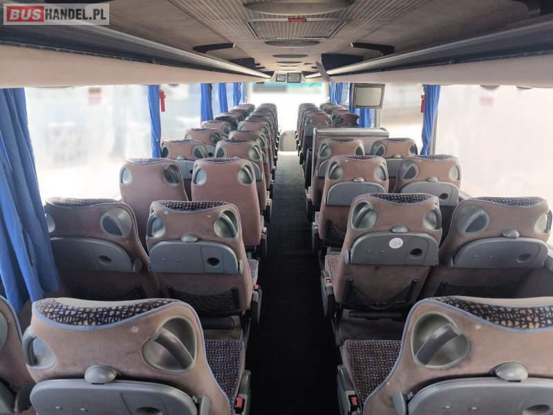 Wyposażenie: klimatyzacja, WC, lodówka, caffebar, fotele odchylane, stoliczki, siateczki, ABS, tempomat, retarder, mikrofon, ogrzewanie stacjonarne, DVD