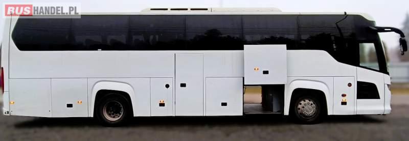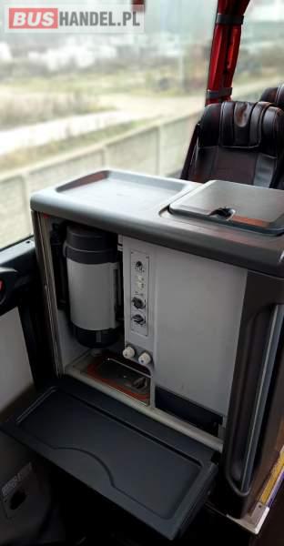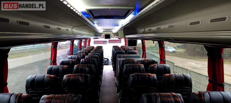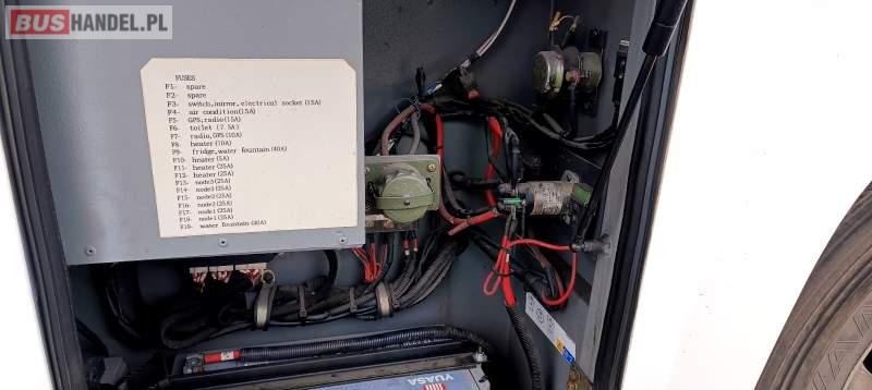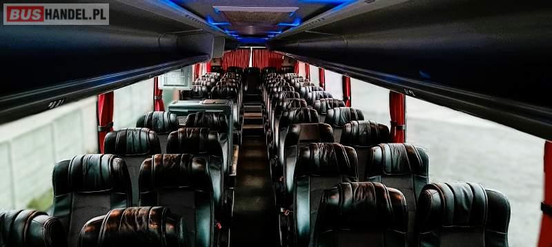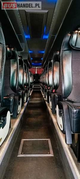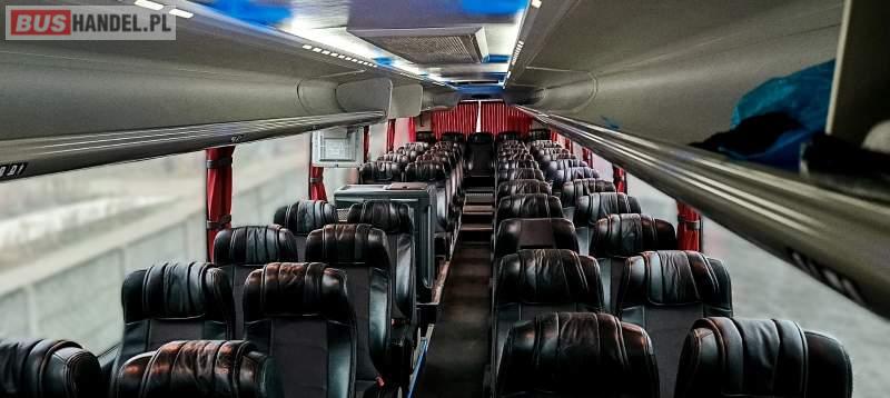 Wyposażenie: klimatyzacja, video, WC, lodówka, caffebar, kabina sypialna, stoliczki, siateczki, ABS, ASR, tempomat, retarder, CD, mikrofon, radio, fotele odchylane i rozsuwane, aluminiowe felgi, elektryczne lusterka, ogrzewanie stacjonarne, DVD, ESP